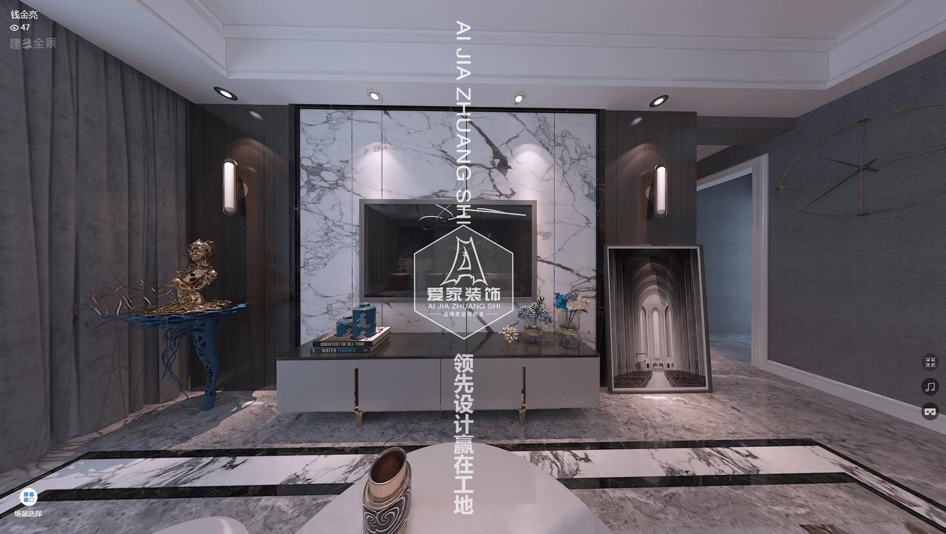 主要材料:護墻板、大理石、抽象畫(huà)、墻布