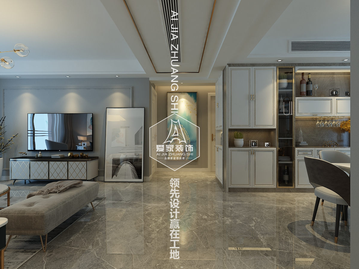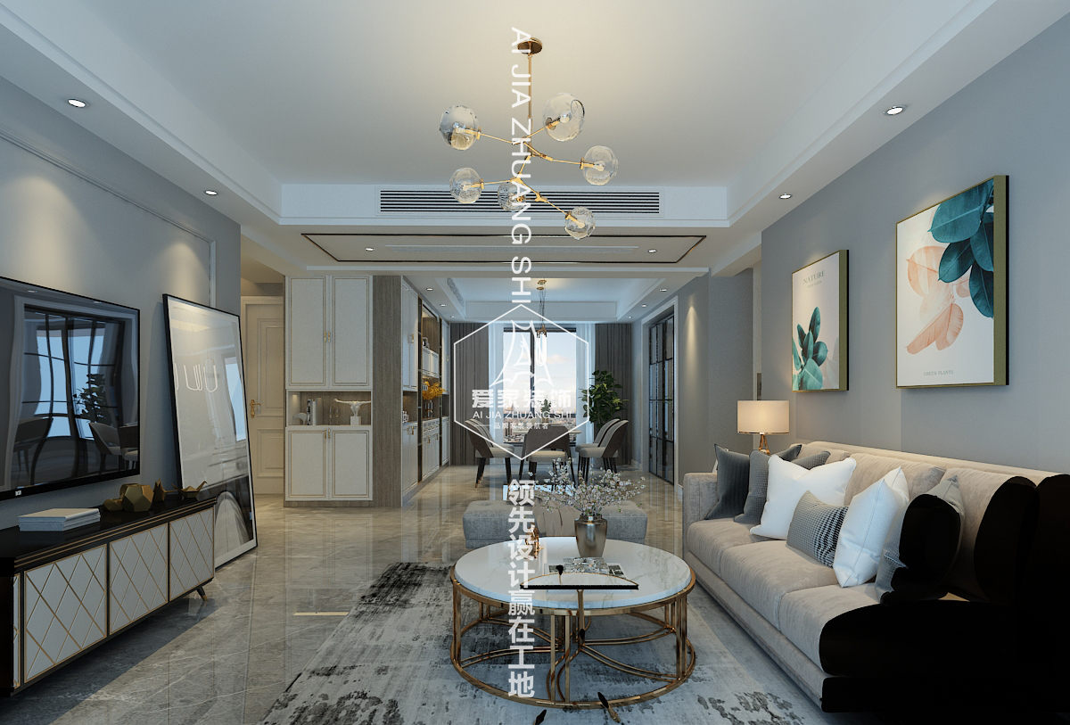 設計說(shuō)明:本案采用了白、藍、金等色調,在整個(gè)空間里呈現的是淡藍色和白色顏色組合非常流行。加了一點(diǎn)金屬材質(zhì),使整個(gè)空調更家生動(dòng),有活力。